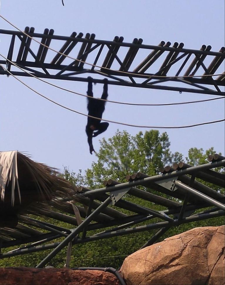 능력발휘하는 침팬지. 평상시에는 늘어져있을 때가 많다던데 운좋은 날이다. 활기찬 침팬지를 볼 수 있다.