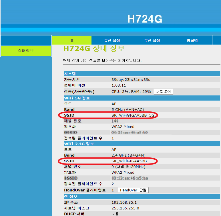 확인을 해 보니 SSID가 다른 특별한 게 아니라