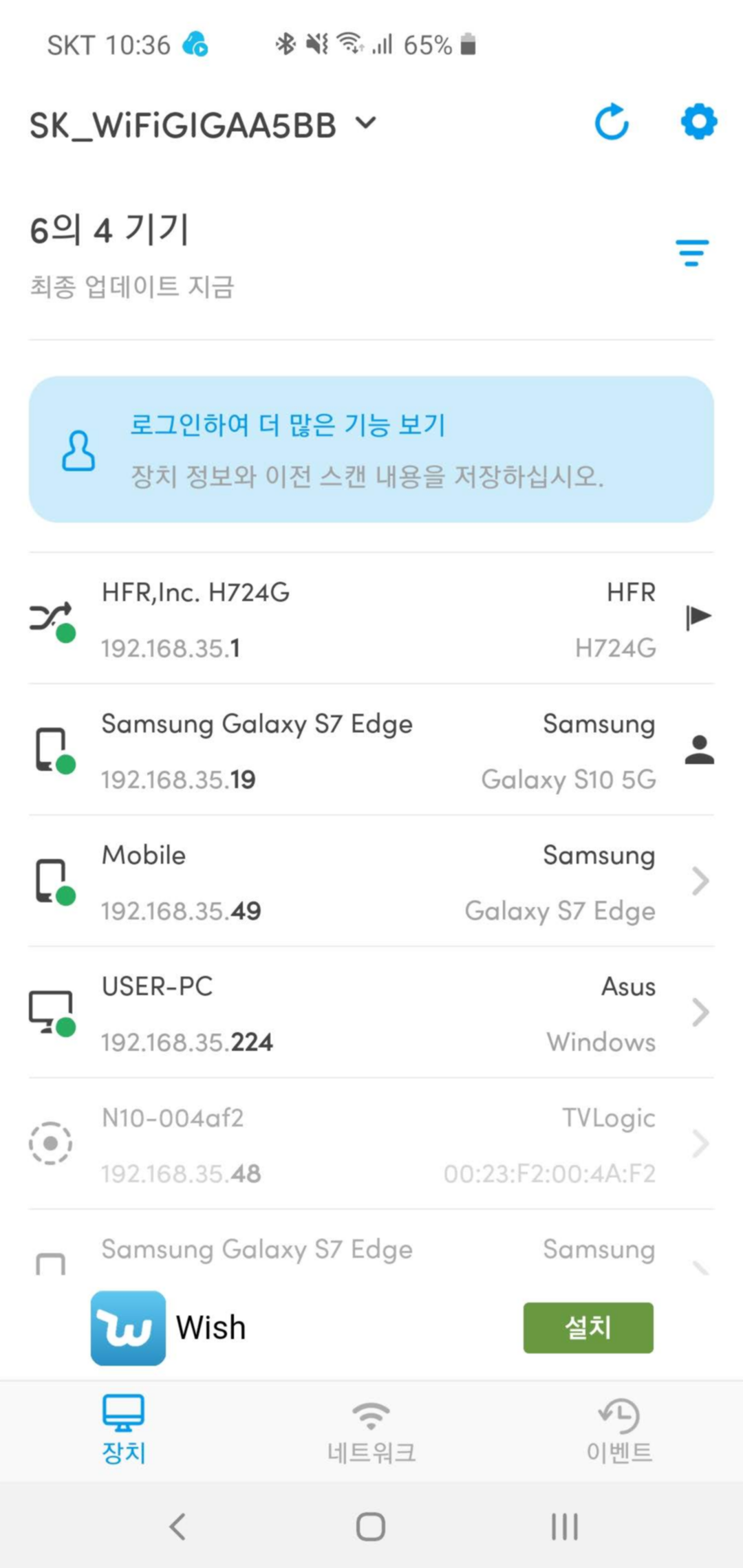 FING 어플에서 현재 접속중인 WIFI 정보 뿐 아니라 여기에 접속해 있는 주변기기 정보를 모두 얻어올 수 있습니다.