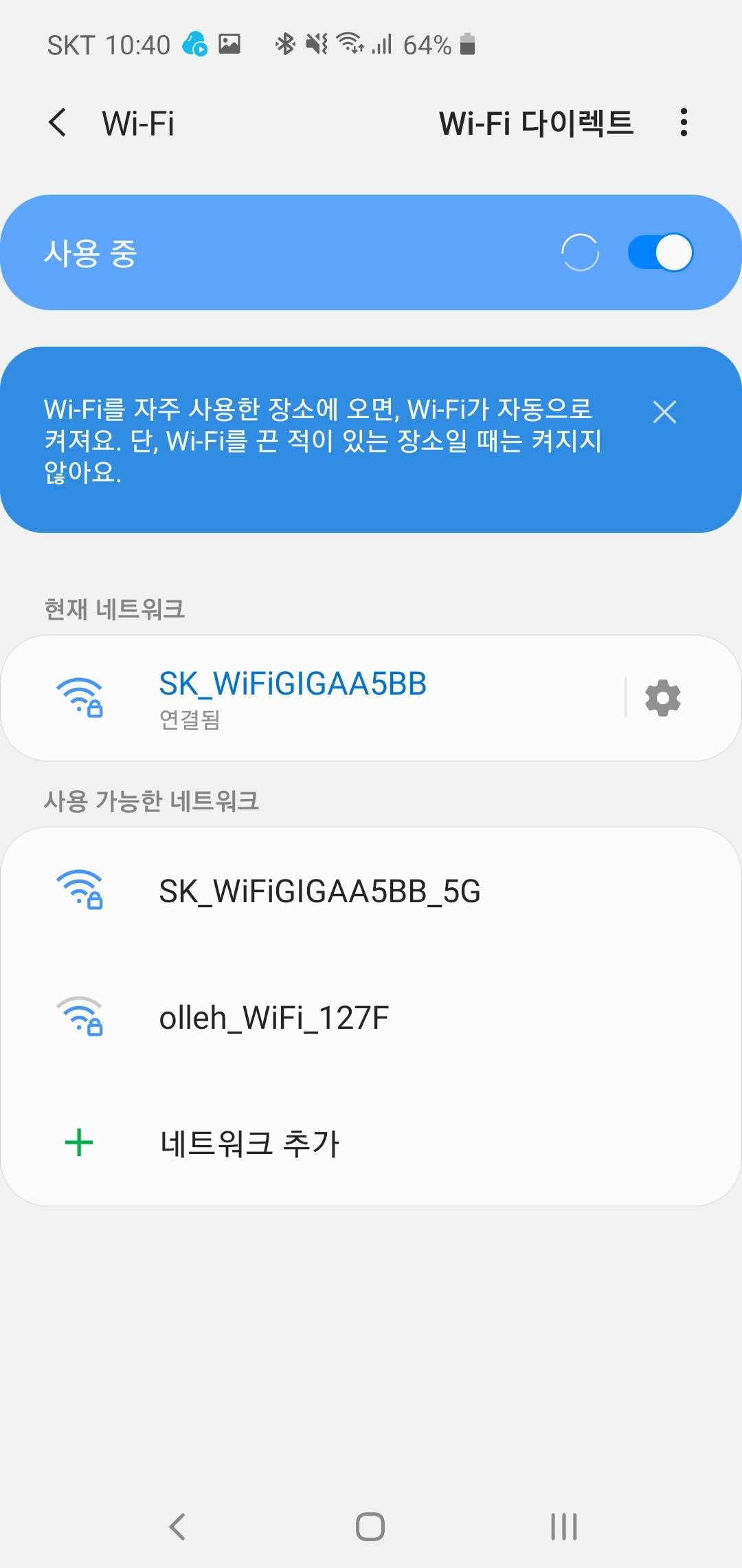 WIFI접속할 때 사용했던 이름이었네요