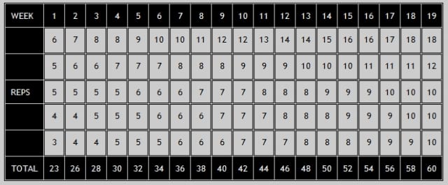 5. 해당 주의 개수를 완벽하게 실행이 되고 나면 다음 주의 개수로 넘어간다. 아니면 1주일이 지나도 이전주와 동일한 개수로 훈련한다.