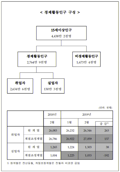 통계청 자료에 의하면 국내 경제활동인구 2700여만명 중 실업자 제외 2600만명이다.