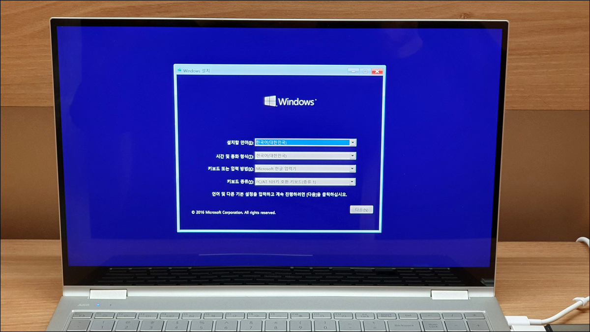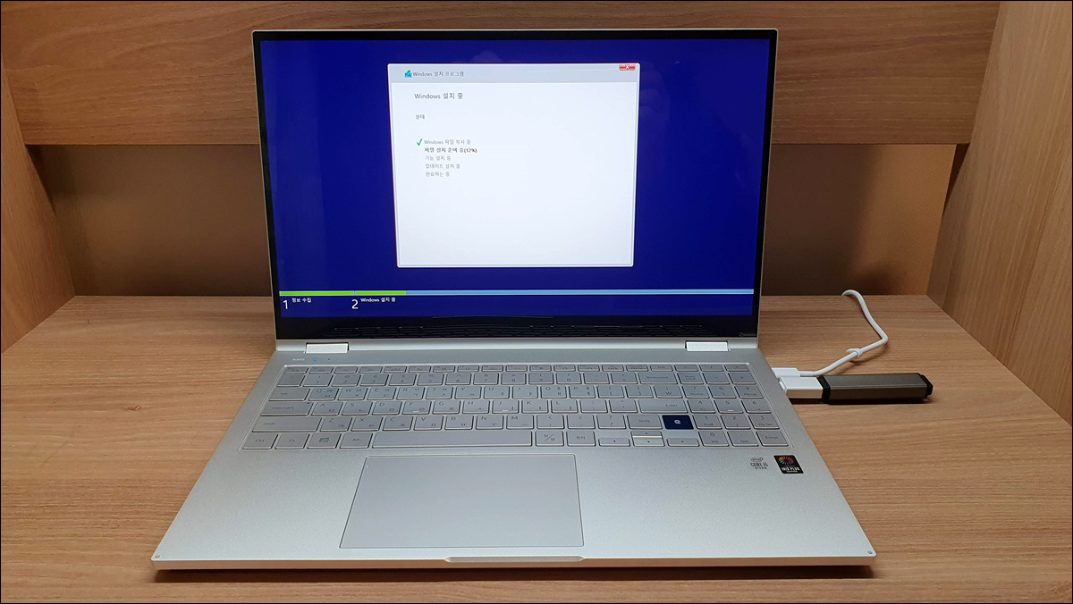 다음 번 부팅 때 USB디스크로 먼저 부팅이 되어서 윈도우 설치모드로 들어가게 됩니다.