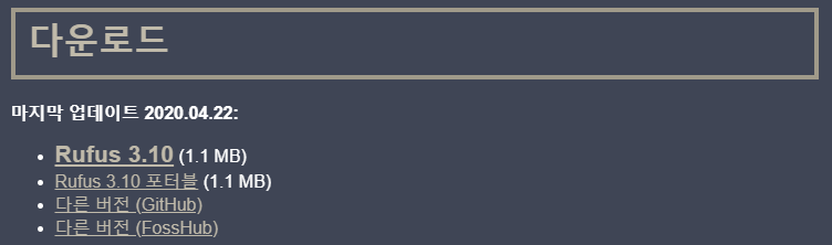 3. Rufus 3.10 프로그램 (부팅디스크 USB 만들어주는 프로그램)