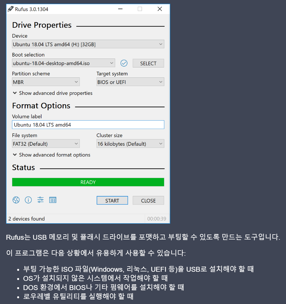 Rufus 프로그램은 간편하게 부팅디스크 USB 만드는 프로그램입니다.