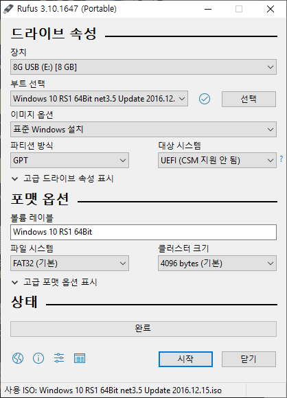 iso파일의 형태로 이미 가지고 있는 윈도우10 이미지를