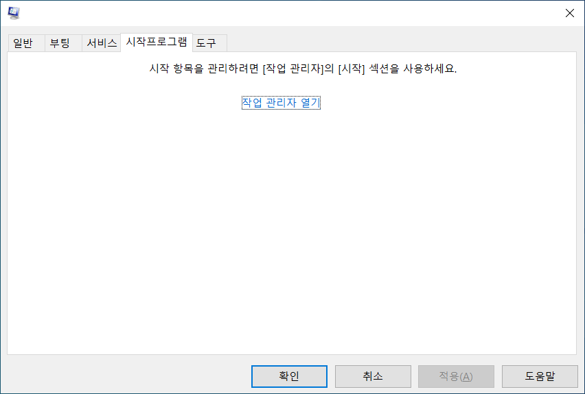 번외로 예전에는 시작프로그램을 수정하기 위한 위치가 작업관리자가 아닌 msconfig 프로그램에 들어있었습니다.