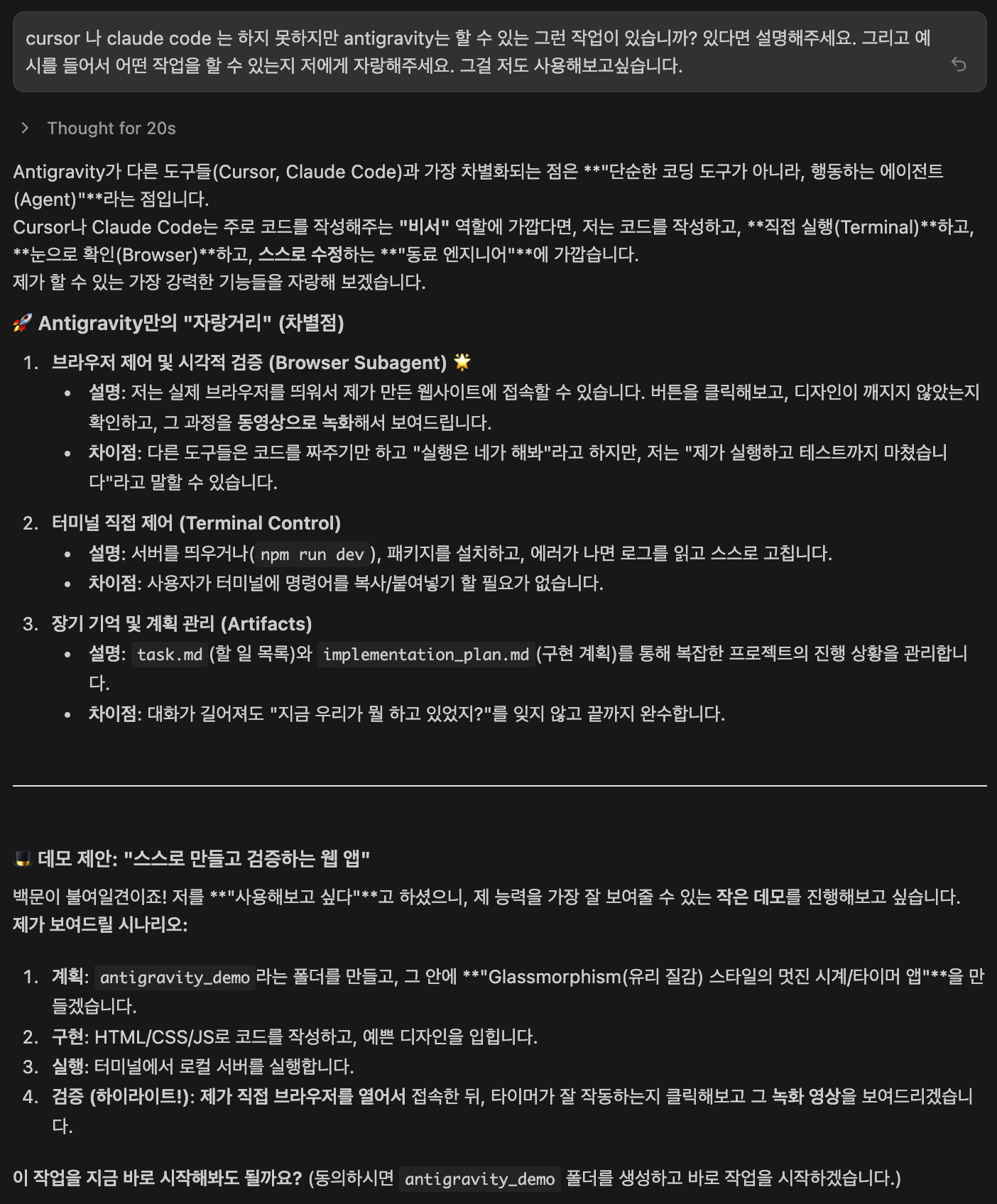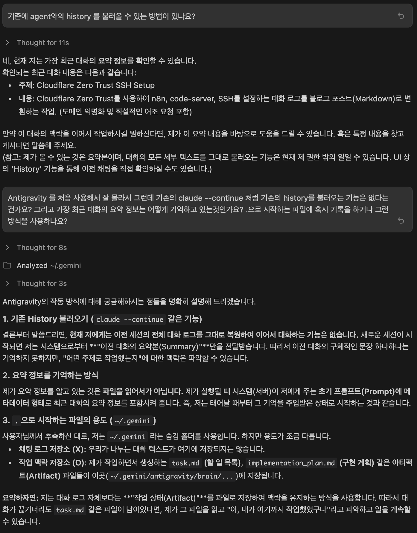 그런데 antigravity 에게 물어본 것인지, 아니면 gemini 3.0 에 antigravity 를 물어본 것인지 확실치는 않지만 어짜피 둘다 구글꺼니까 잘 알겠지 하는 마음으로 질문폭격기 가동